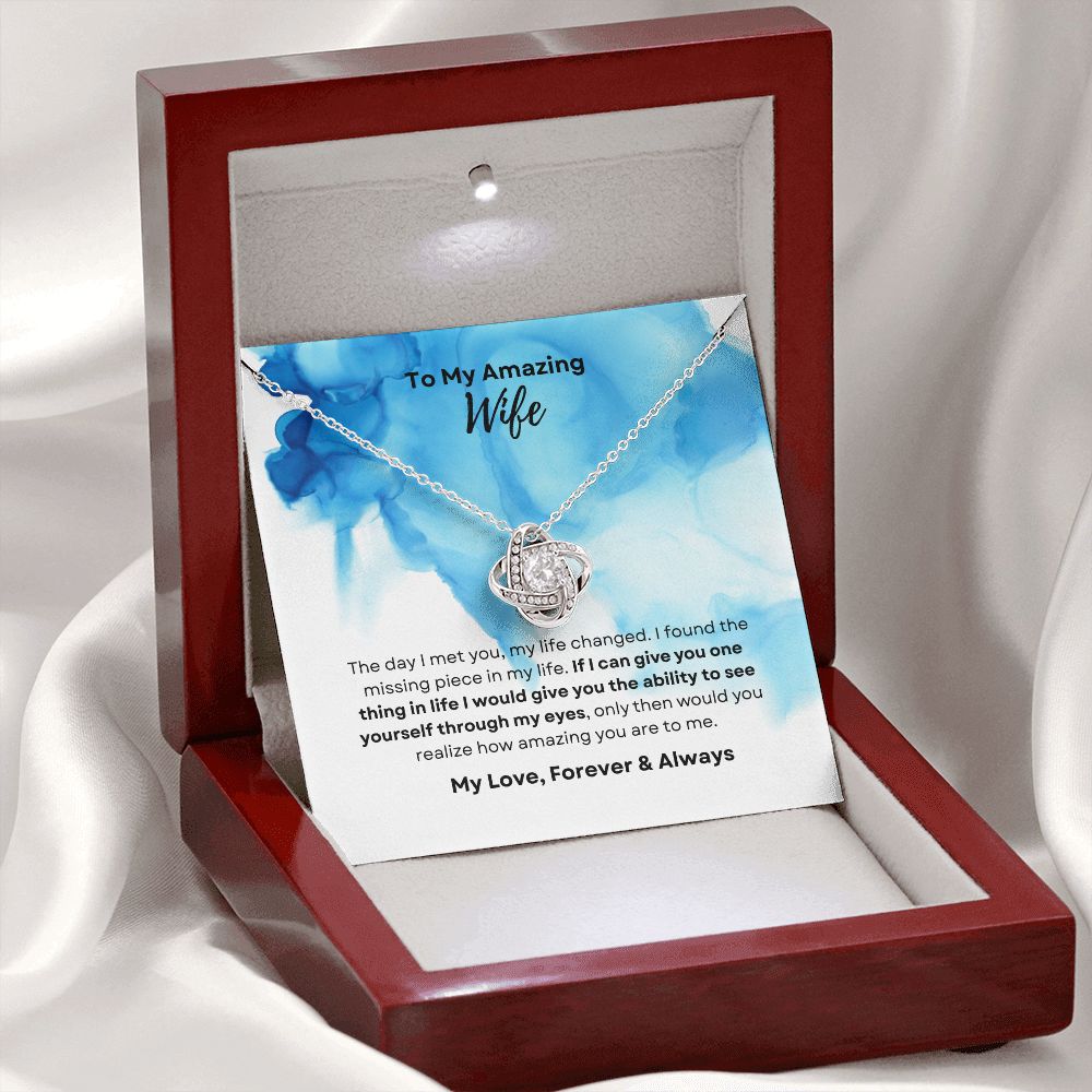 Imagine her reaction receiving this beautiful Love Knot Necklace. Representing an unbreakable bond between two souls, this piece features a beautiful pendant embellished with premium cubic zirconia crystals. Surprise your loved one with this gorgeous gift today!